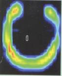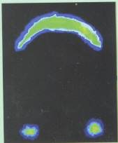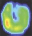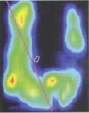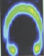 (Belastungsmuster des Brumbys aus hartgründigem Lebensraum mit Sand. Beachten Sie das 3 Punkt-Muster der Belastung. | (Belastungsmuster des Brumbys aus hartgründigem Lebensraum im Trab. Sohlenrand, Trachten und Hufwand sind belastet. | (Belastungsmuster des Brumbys aus hartgründigem Lebensraum im Galopp. Beachten Sie die Lastaufnahme der Hinteren Seitenwand. Strahl und mittlerer Sohlenbereich werden typischerweise nicht belastet. |